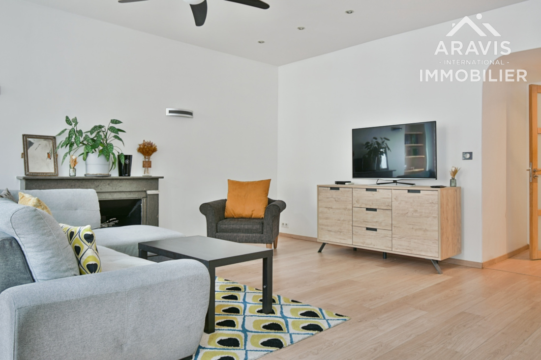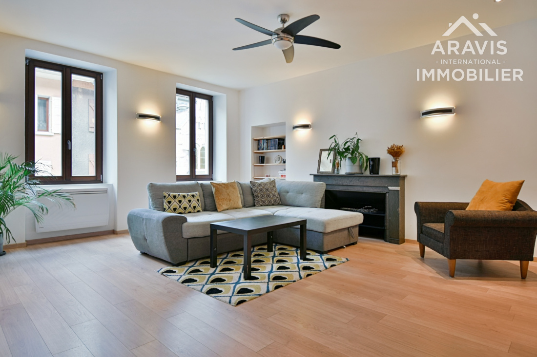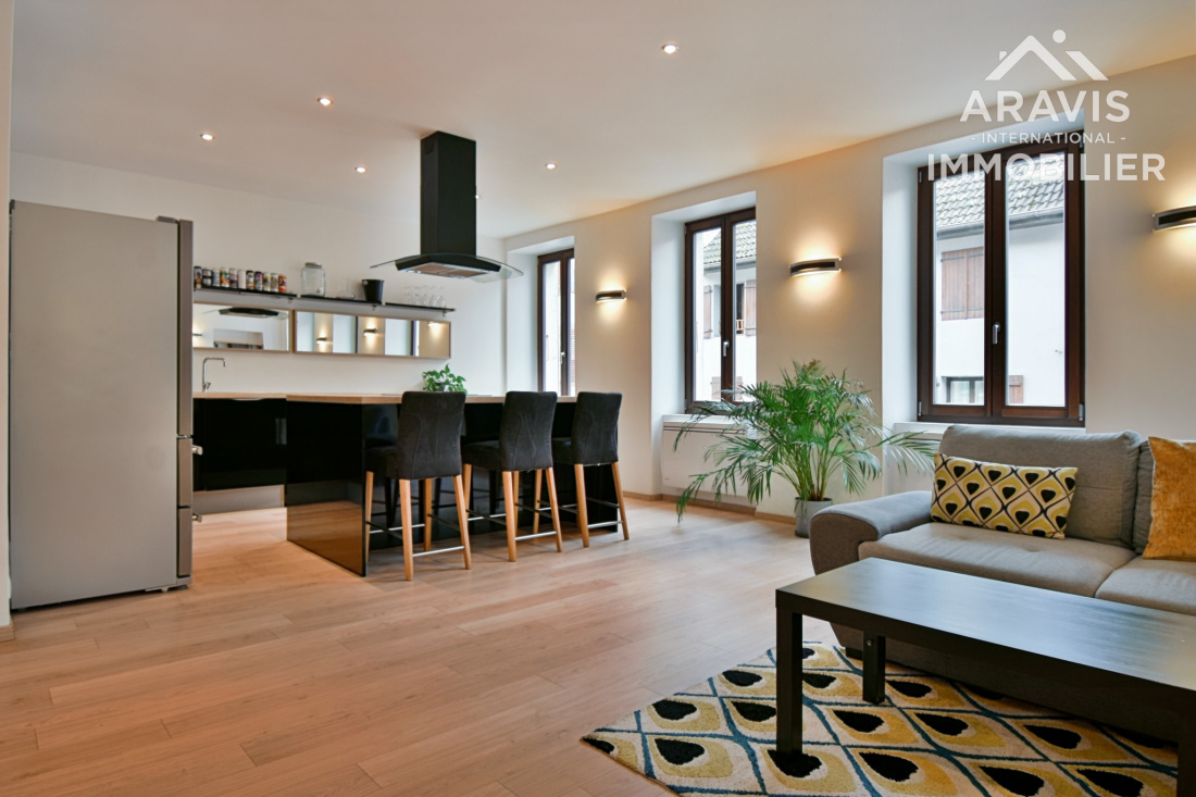 Location à l'année, d'un grand T3 meublé de 88.53m², entièrement rénové avec goût , située au centre ville de Faverges-Seythenex, au 1er étage d'une petite copropriété. Il se compose d'une entrée avec placard, un WC séparé, deux belles chambres et d'une cuisine ouverte donnant sur la grande pièce à vivre.