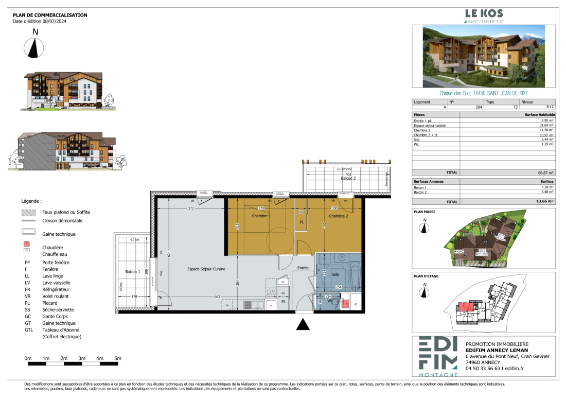 Découvrez au centre de Saint-Jean-de-Sixt cet appartement de type 3 composé d'un bel espace de vie ouvert sur la cuisine ainsi que sur la terrasse exposée ouest.