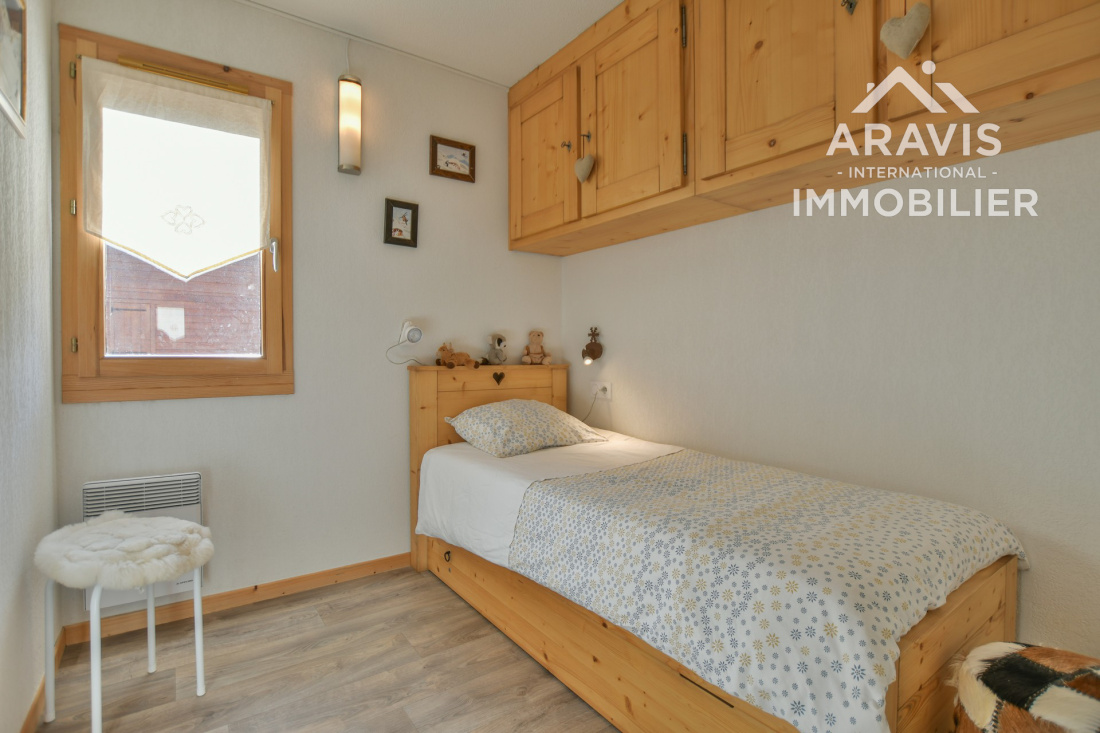En annexes, l’appartement dispose d’un casier à skis, d’une grande cave de 3,65 m² ainsi que d’un garage box fermé de 20,45 m², équipé de prises électriques, bénéficiant d’une belle hauteur sous plafond et d’une fenêtre.