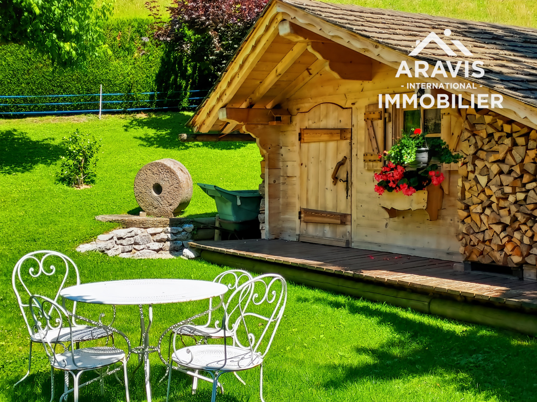 L’extérieur offre une belle terrasse avec vue dégagée, panoramique sans vis-à-vis sur les montagnes, et équipée d’un SPA (4 places). Le jardin paysagé est agrémenté d’un mazot en bois.