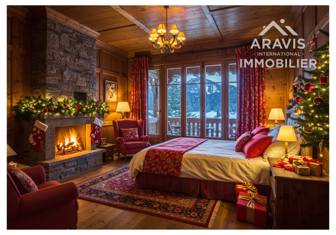 Vue imprenable sur les montagnes enchantéesLes pics lumineux changent de couleur selon l’humeur du Père Noël (ou du futur propriétaire).