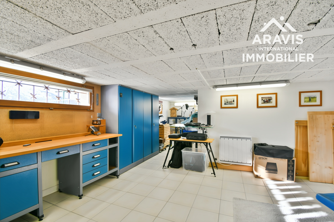 Au niveau inférieur, un studio indépendant, une grande pièce actuellement utilisée en atelier, un espace de stockage, une chaufferie buanderie et une véranda complètent l’ensemble
