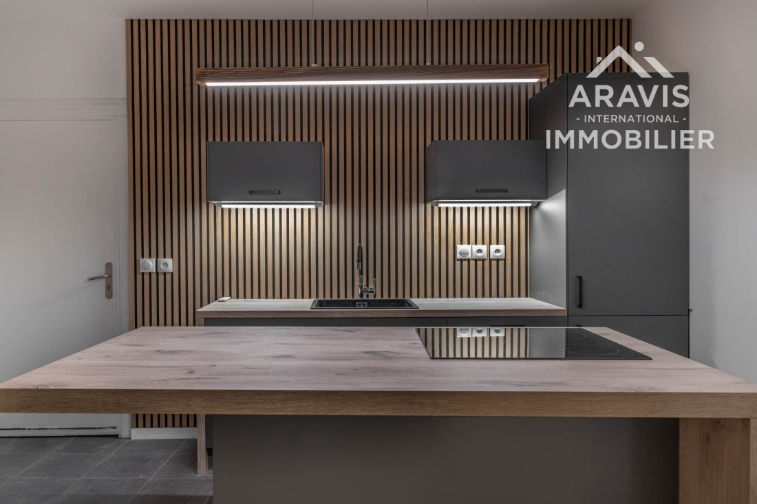 En plein cœur de Faverges-Seythenex, appartement de 54 m² entièrement remis à neuf, situé au deuxième étage d’une petite copropriété.