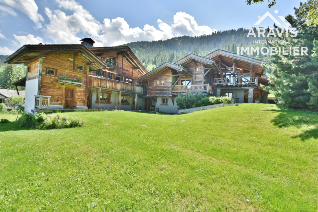 Magnifique ensemble immobilier composé de deux chalets et d’un studio, idéalement situé skis aux pieds sur la piste des Timalets, aux Carroz d’Araches, offrant une superbe vue dégagée sur les montagnes environnantes.