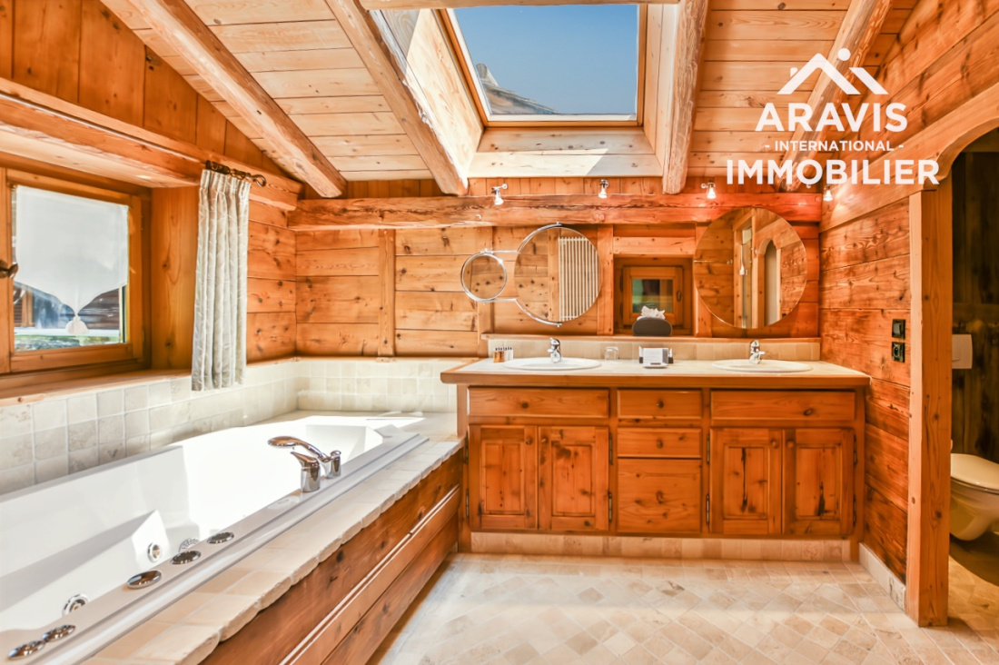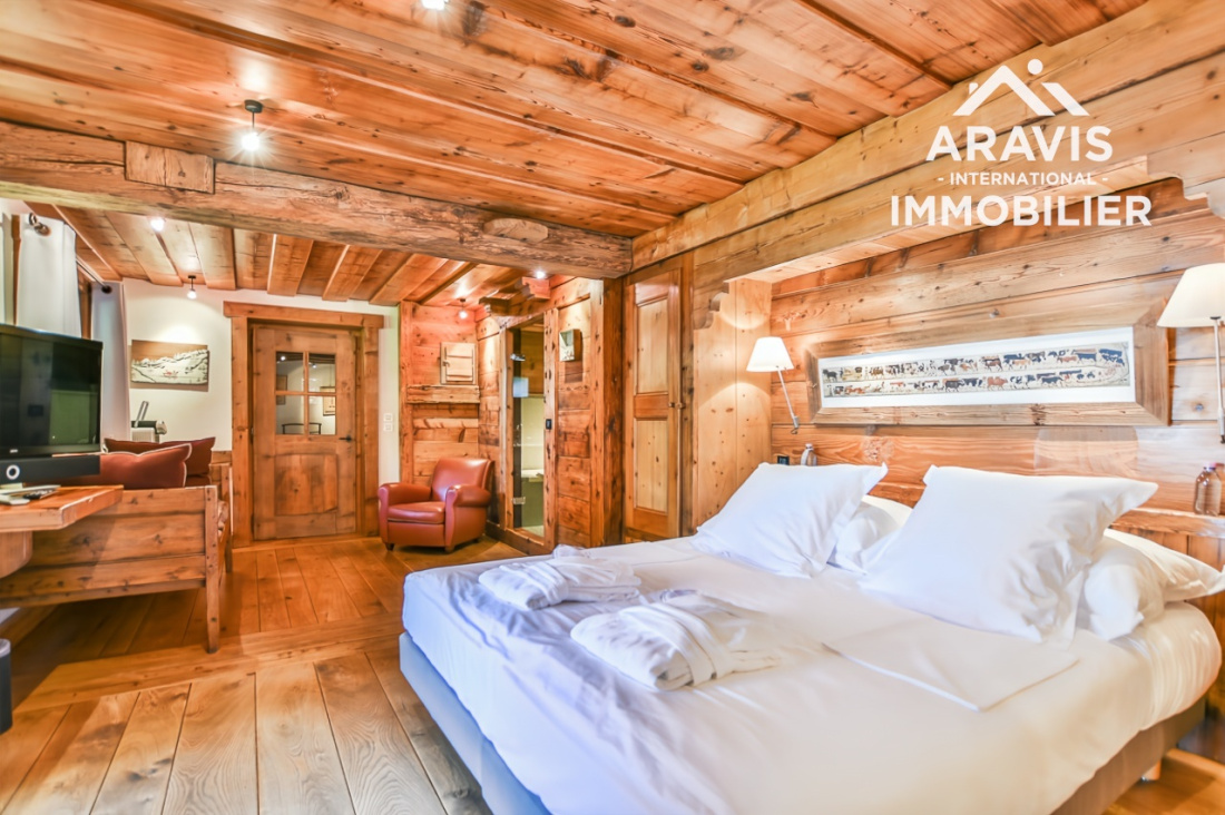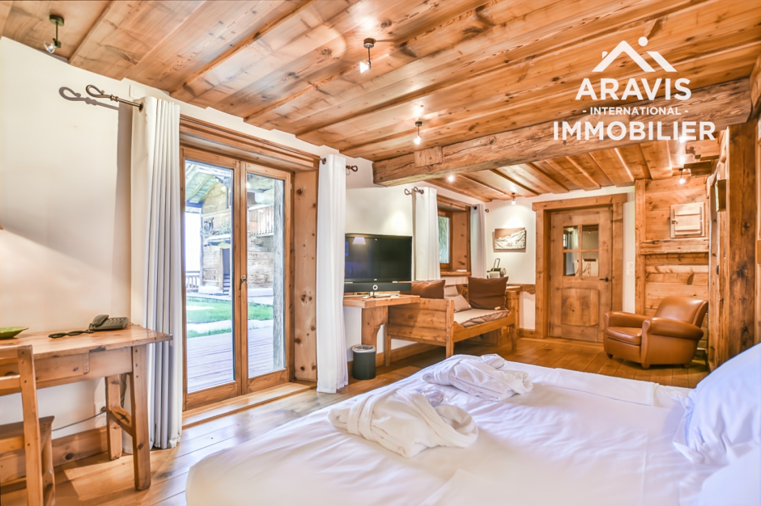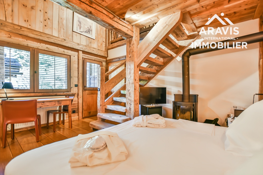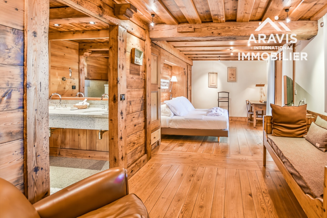 Ce chalet élégant est actuellement loué en privé. L’autre chalet, composé de quatre magnifiques suites luxueuses, est exploité en location avec les services de l’hôtel Les Servages d’Armelle situé en face. Un studio indépendant se trouve également au sous-sol.