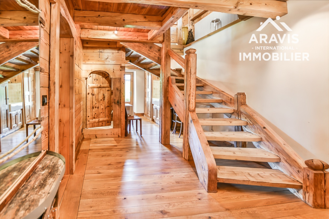 L’ensemble développe environ 545 m² et dégage une atmosphère de calme et de sérénité. Il est implanté sur un terrain d’environ 1 139 m², exposé plein sud, et situé à quelques pas seulement du village et une vue magique sur la chaine des Aravis.