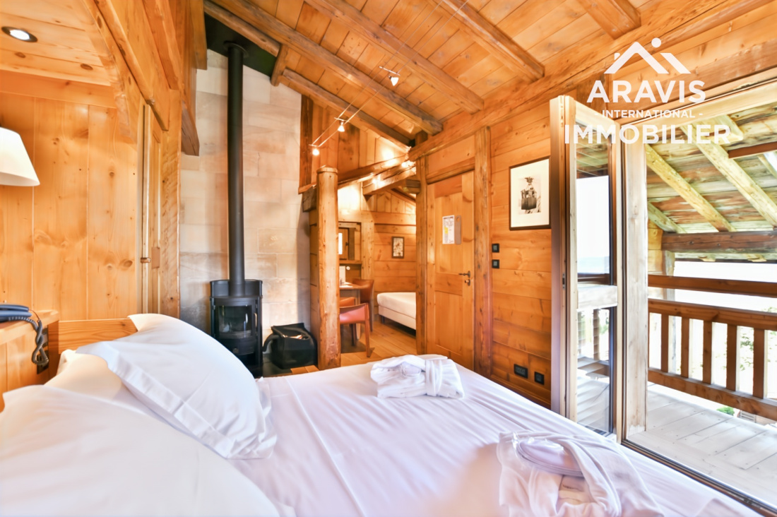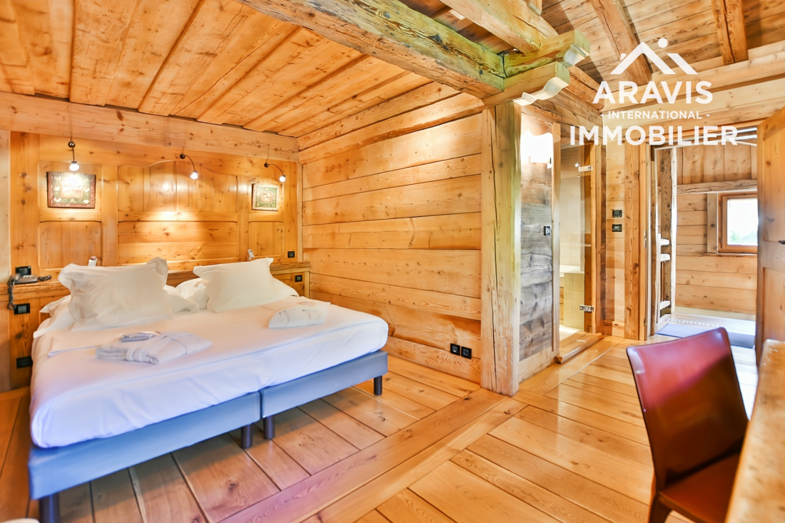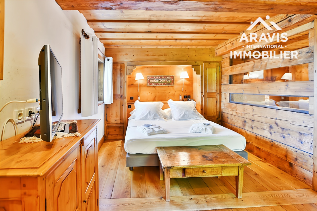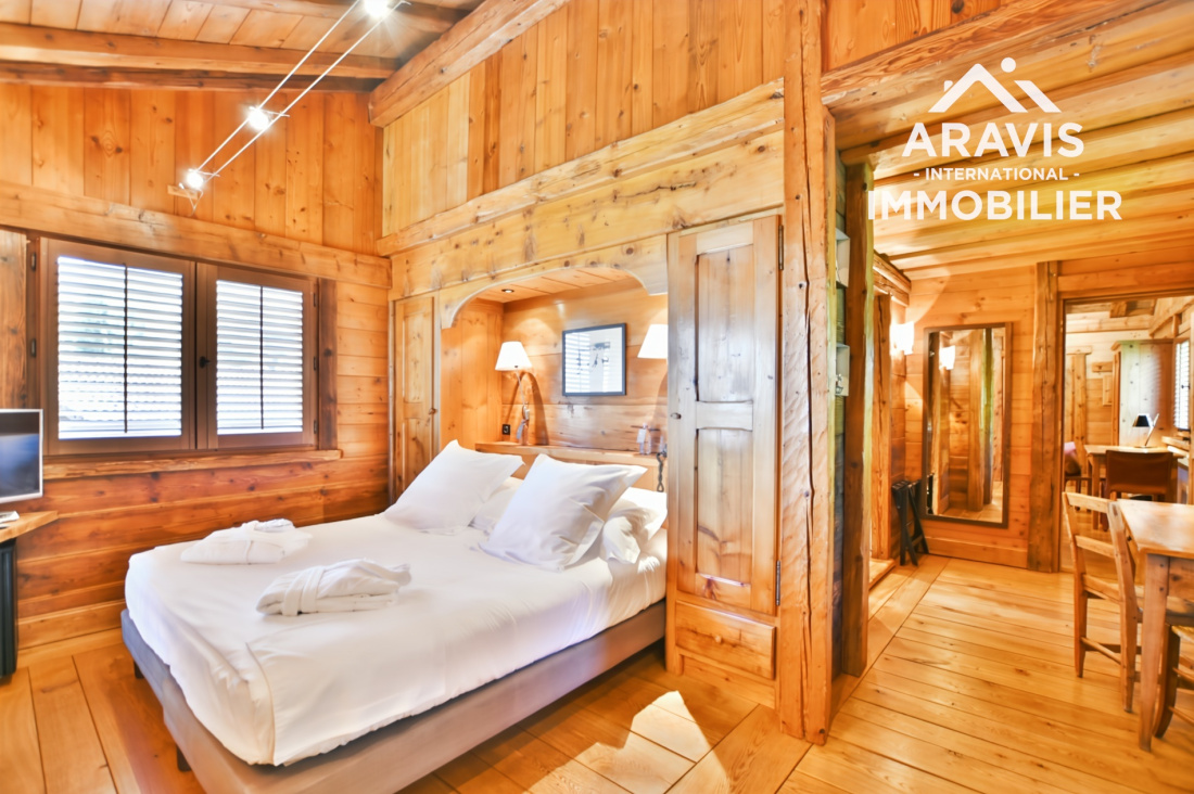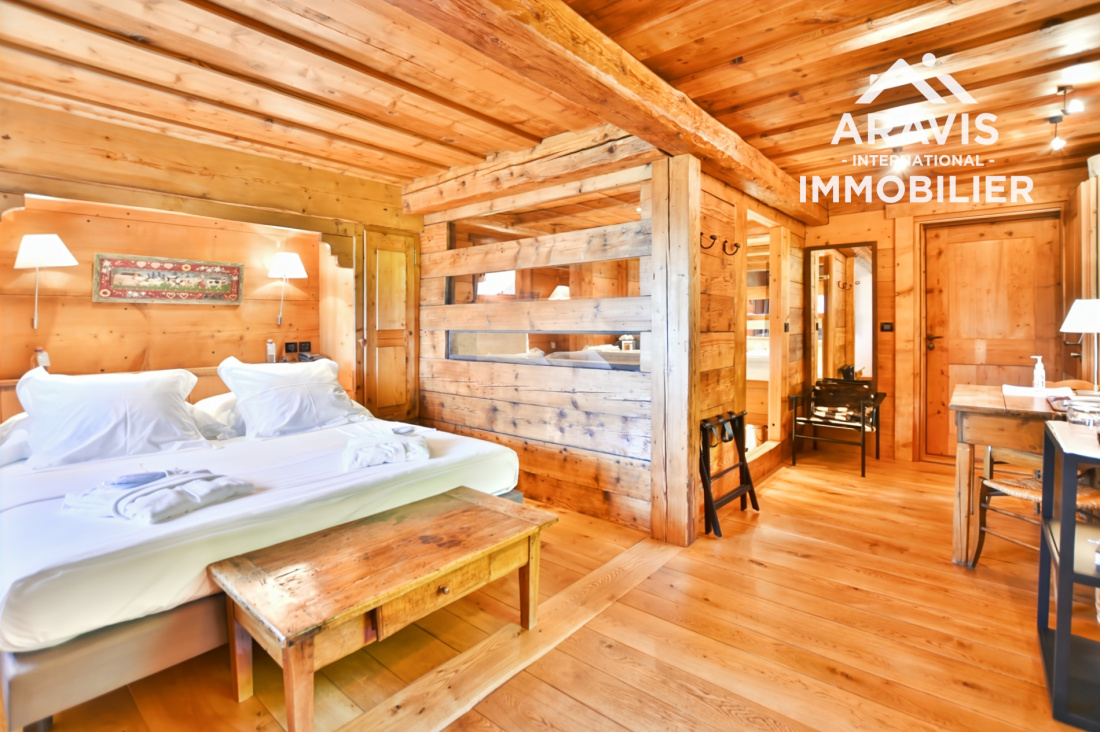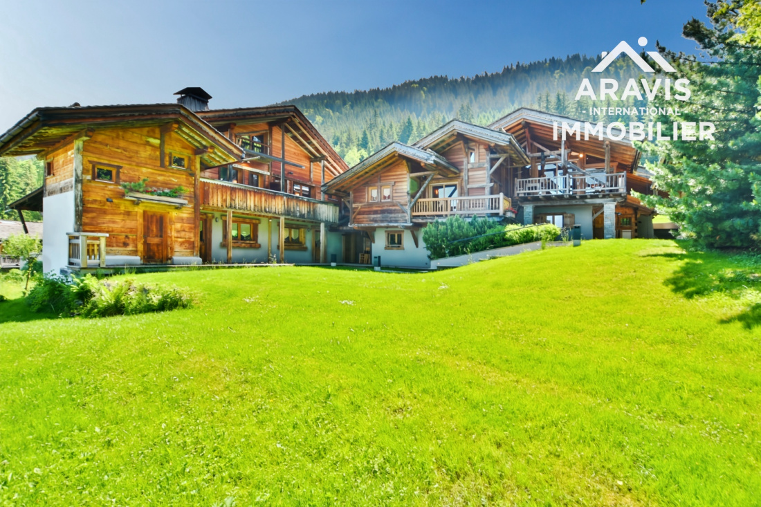 Rare opportunité d’acquérir un chalet d’exception d'environs 200m2 habitable (utile) skis aux pieds, au fort potentiel, situé dans le secteur prisé des Servages aux Carroz d’Arâches. Cette propriété haut de gamme s’inscrit au sein d’un élégant ensemble immobilier composé de deux chalets reliés par une discrète jonction de toiture, édifiés sur un terrain commun, et bénéficie d’un emplacement privilégié en bordure directe de la piste des Timalets, offrant une vue panoramique remarquable sur les massifs environnants.